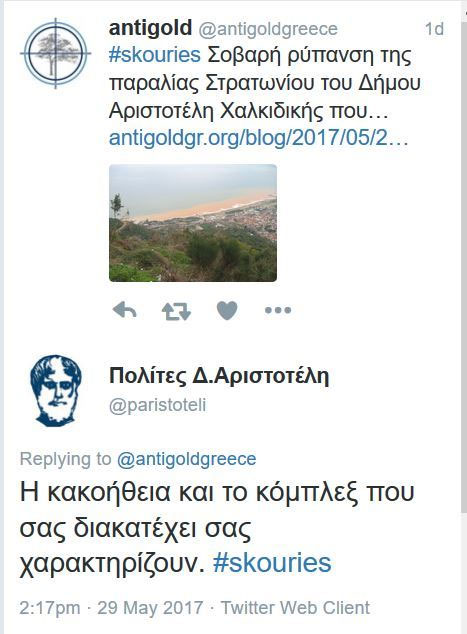 Ο λογαριασμός του Twitter @paristoteli ανήκει στους εργαζομένους της ELDORADO GOLD στην Χαλκιδική.