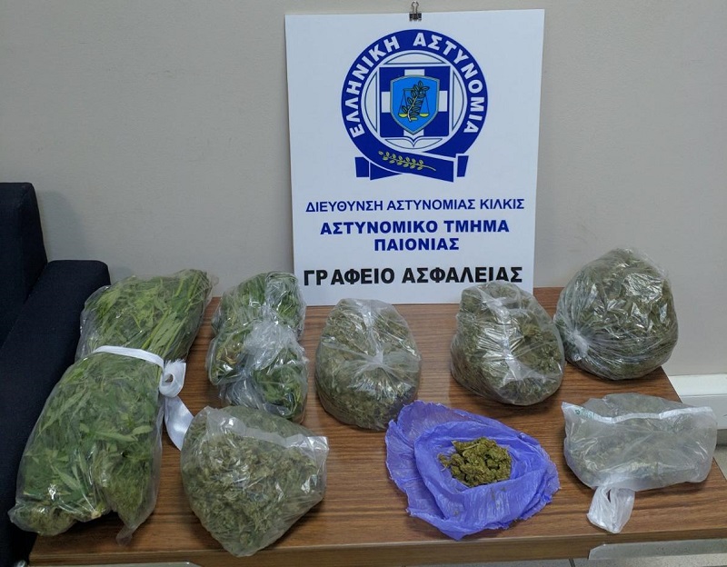 Ύστερα από έρευνες αστυνομικών του Αστυνομικού Τμήματος Παιονίας, στο κτήμα και σε ένα τροχόσπιτο του άνδρα βρέθηκαν και κατασχέθηκαν οκτώ δενδρύλλια κάνναβης με ύψος που έφτανε τα τρία μέτρα, σε ειδικά διαμορφωμένο θερμοκήπιο, ποσότητα κάνναβης με βάρος που ξεπερνά το ένα κιλό και φυτικά αποσπάσματα κάνναβης 270 γραμμαρίων.
