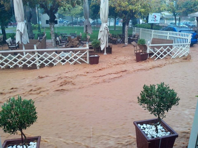 Λίγα λεπτά φθινοπωρινής μπόρας ήταν αρκετά για να μετατρέψουν σε… ποτάμια τους δρόμους της Τρίγλιας στη Χαλκιδική.