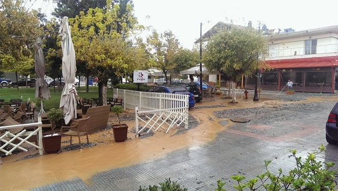 Λίγα λεπτά φθινοπωρινής μπόρας ήταν αρκετά για να μετατρέψουν σε… ποτάμια τους δρόμους της Τρίγλιας στη Χαλκιδική.
