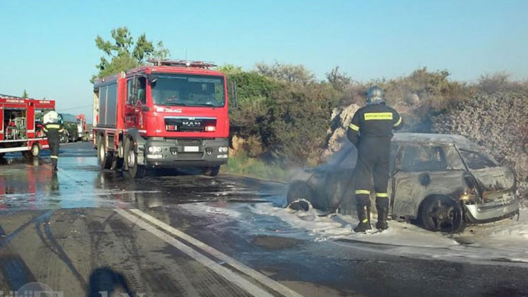 Ειδικότερα, κάτω από αδιευκρίνιστες μέχρι στιγμής συνθήκες, ο οδηγός ενός Ι.Χ. έχασε τον έλεγχο του οχήματος, το οποίο έπεσε πάνω σε ανάχωμα, έκανε δυο – τρεις τούμπες και στη συνέχεια τυλίχθηκε στις φλόγες.
