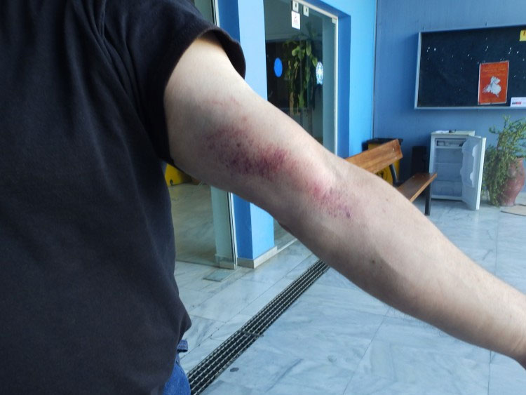 Στην προσπάθειά του να εμποδίσει το αυτοκίνητο να φύγει ο οδηγός του κ. Σκυλουράκης δέχθηκε την επίθεση του Αμερικανού που τον χτύπησε τραυματίζοντας τον ευτυχώς ελαφρά, ενώ τον παρέσυρε και με το όχημα, σέρνοντάς τον στο έδαφος.