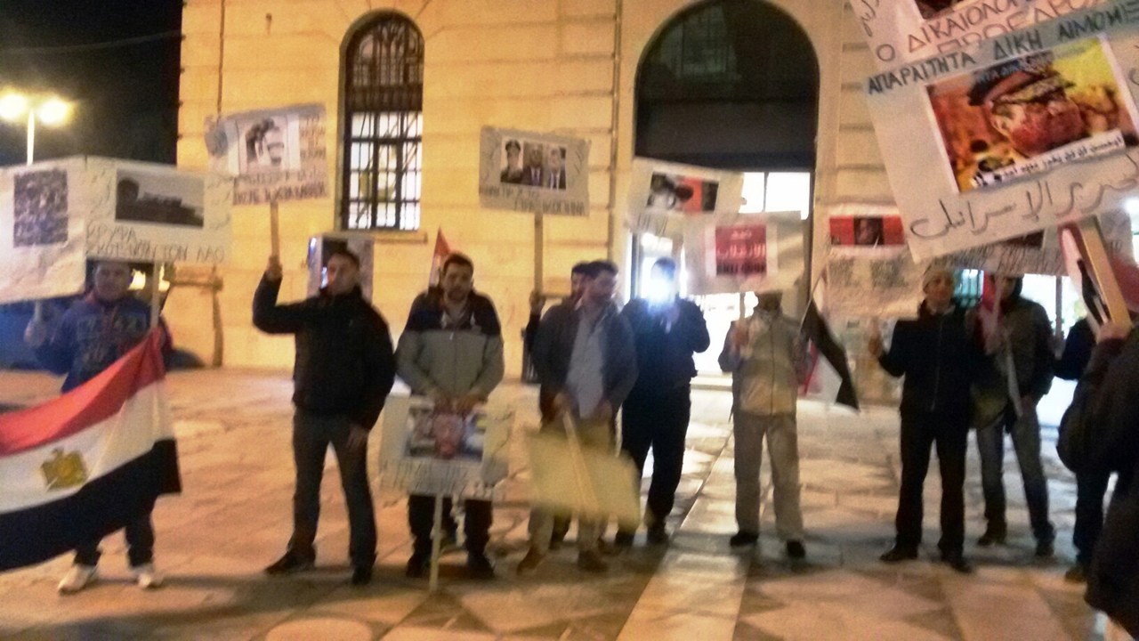 Συγκέντρωση διαμαρτυρίας πραγματοποίησαν το βράδυ της Παρασκευής Αιγύπτιοι που κατοικούν στα Χανιά, με αφορμή της επετείου των τριών χρόνων από την ανατροπή του προέδρου Μόρσι και την ανάληψη της εξουσίας από τον αρχηγό των ενόπλων δυνάμεων, Φατάχ αλ Σίσι.