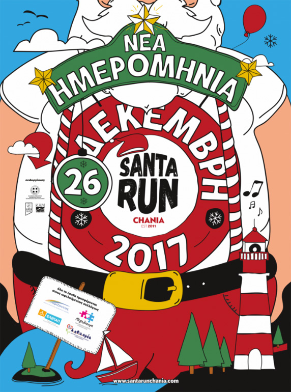 Η διοργάνωση του 7ου Santa Run μετατίθεται για τις 26 Δεκεμβρίου 2017, την ίδια ώρα. Μέχρι τότε μπορούν και οι αναβλητικοί Άγιοι Βασίληδες να προμηθευτούν τη στολή τους από το Σπίτι του Santa Run (Βολουδάκηδων 17), ώστε αυτή η μικρή καθυστέρηση να δυναμώσει πιο πολύ τους στόχους του Santa Run Chania και τους τέσσερις ωφελούμενους συλλόγους: ΕΛΕΠΑΠ, ΚΗΦΑΑΜΕΑ, ΚΗΦΑΠ «Η Μεγαλόχαρη», Ορίζοντας.