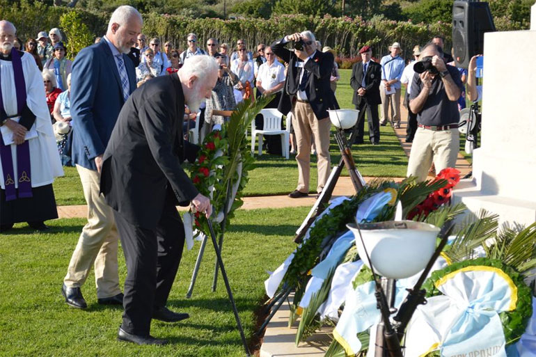 Επίσης συγκινητική ήταν η κατάθεση στεφάνου από τον επιζώντα Έλληνα αξιωματικό της Μάχης της Κρήτης, κ. Νικόλαο Κοπάση, όπου καταχειροκροτήθηκε μετά την απόδοση φόρου τιμής.