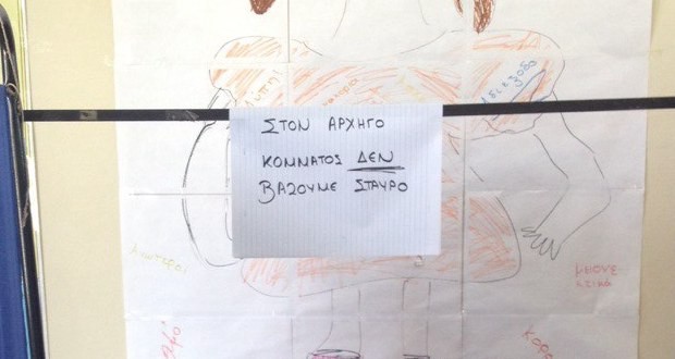 «Στον αρχηγό κόμματος ΔΕΝ βάζουμε σταυρό» υπενθυμίζει η επιγραφή που αναρτήθηκε μέσα σε παραβάν εκλογικού τμήματος στον Δήμο Χανίων.