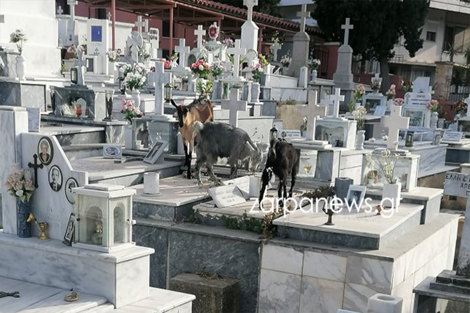 Τρία κατσίκια αντίκρισε αναγνώστρια του zarpanews.gr το απόγευμα της Τετάρτης, καταμεσής στο κοιμητήριο Αγίας Φωτεινής, στη Χαλέπα Χανίων.