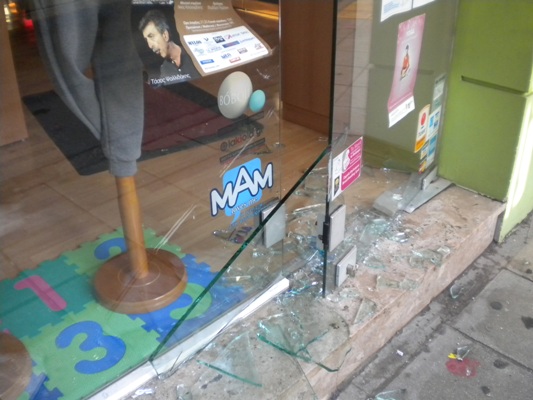 Σύμφωνα με τους ιδιοκτήτες του καταστήματος, η ζημιές προκλήθηκαν από μεθυσμένους στρατιώτες που επέστρεφαν από διασκέδαση, τα ξημερώματα της Παρασκευής.