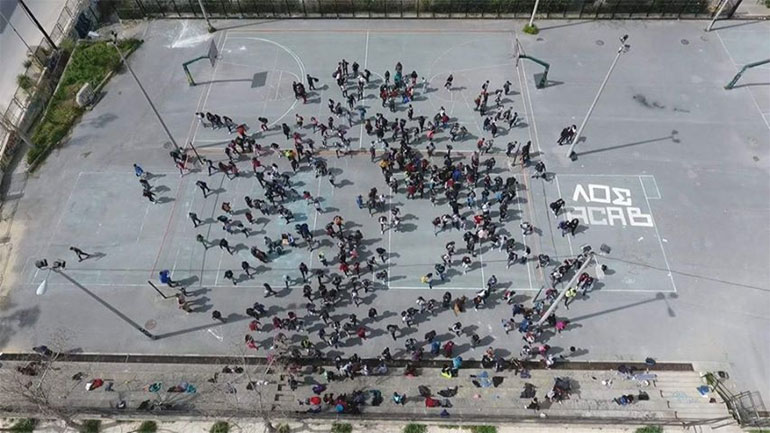 Στο πλαίσιο της Πανελλήνιας Ημέρας κατά του σχολικού εκφοβισμού, οι μαθητές σχημάτισαν με τα σώματα και τις τσάντες τους τη φράση: «ΜΙΛΑ ΜΗ ΦΟΒΑΣΑΙ», όπως φαίνεται και στις φωτογραφίες που τραβήχτηκαν με drone και δημοσιεύει το zarpanews.gr.