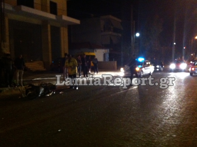 Λίγο μετά τις 23.00 το βράδυ της Παρασκευής ένα μηχανάκι που είχε κατεύθυνση από Λαμία προς Μεγάλη Βρύση συγκρούστηκε με Ι.Χ. αυτοκίνητο στην οδό Στυλίδος στη Νέα Μαγνησία.