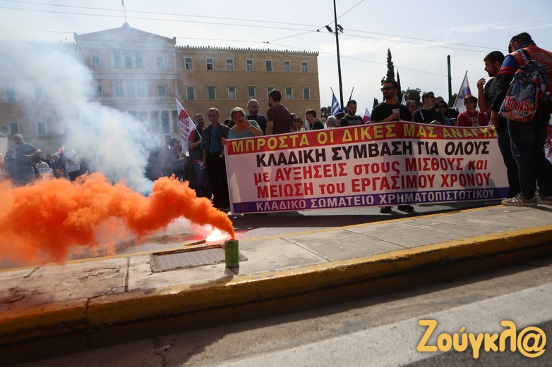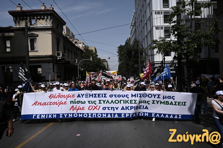 Πλήθος κόσμου είχε συγκεντρωθεί στο κέντρο της Αθήνας, με αφορμή την 24ωρη γενική απεργία που κήρυξε η ΓΣΕΕ, με κύρια αιτήματα τις αυξήσεις στους μισθούς και την επαναφορά των Συλλογικών Συμβάσεων Εργασίας, αλλά και την εφαρμογή αποτελεσματικών μέτρων για την αντιμετώπιση της ακρίβειας.