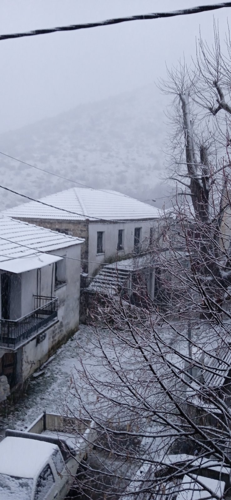 Λευκές εικόνες και στον Παραπόταμο του δήμου Τεμπών, λίγα μόλις χιλιόμετρα από τη Λάρισα.