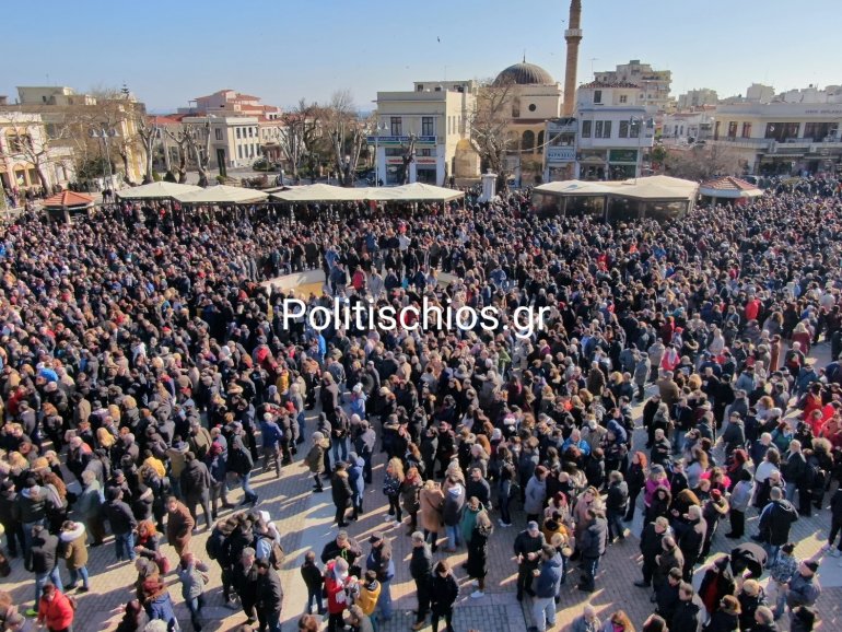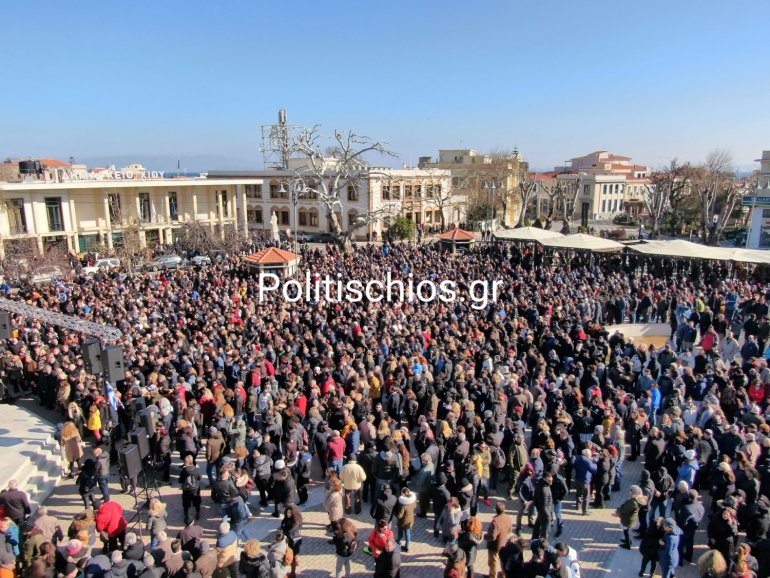 Χιλιάδες κόσμου έδωσαν δυναμικό παρών στη μεγαλειώδη κινητοποίηση στην πλατεία Βουνακίου, ανταποκρινόμενοι στο κάλεσμα της Περιφερειακής Ενότητας Χίου.