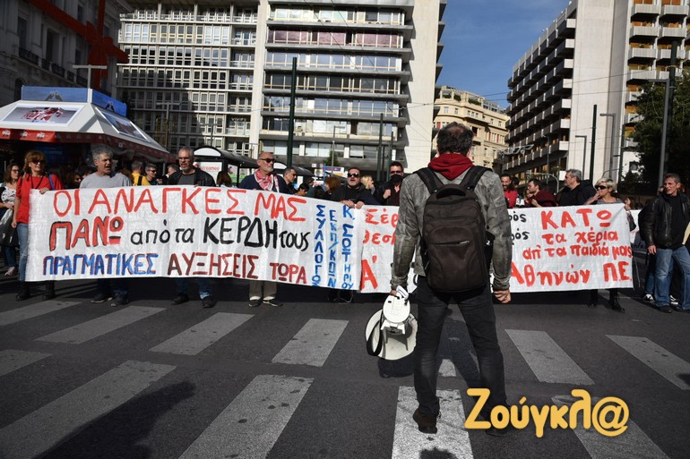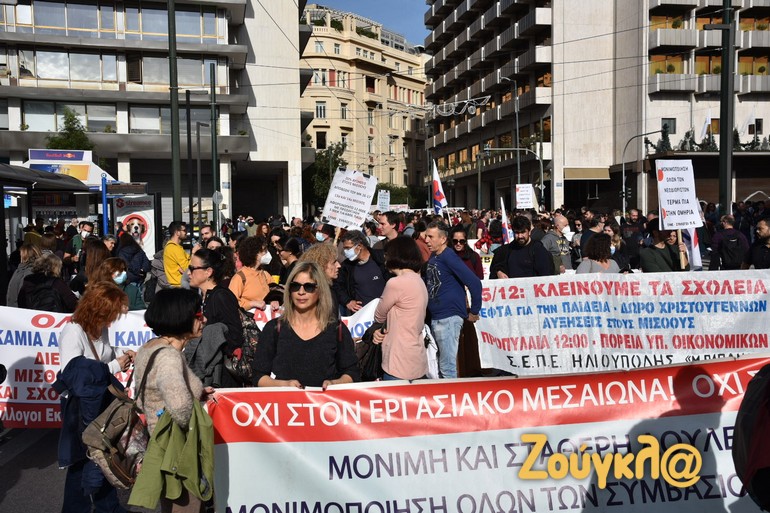 Πορεία στο κέντρο της Αθήνας πραγματοποίησαν η ΑΔΕΔΥ, η ΟΙΕΛΕ, σύλλογοι εκπαιδευτικών και άλλες οργανώσεις, εξ’ αφορμής της 24ωρης απεργίας δασκάλων και εκπαιδευτικών.