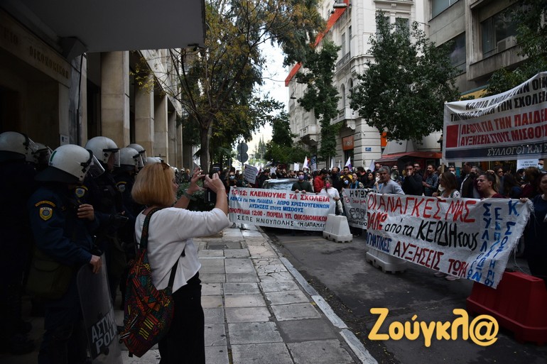 Ακολοθούν πλάνα της συγκέντρωσης των εκπαιδευτικών, έξω από το Υπουργείο Οικονομικών.