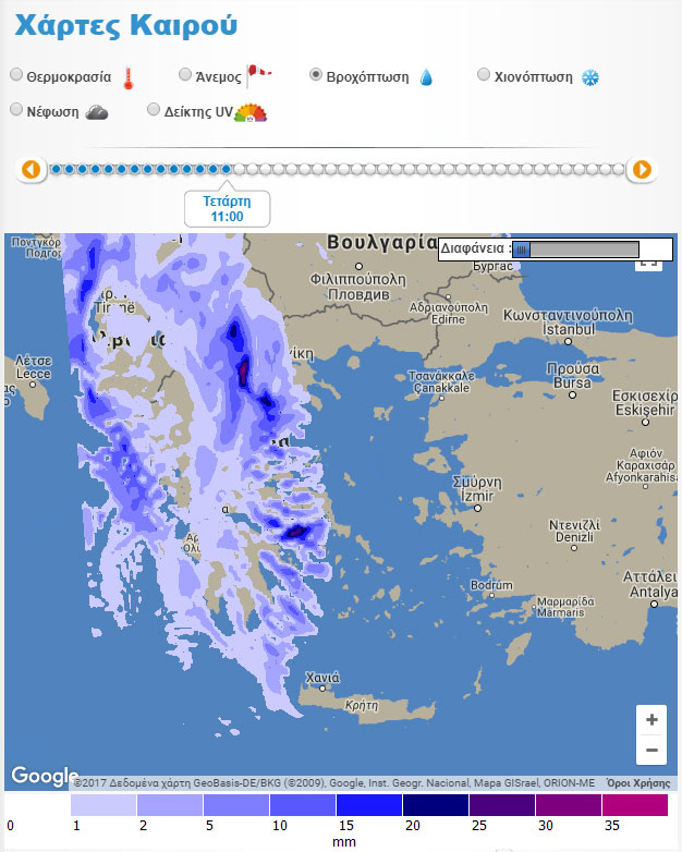 Δείτε αναλυτικά την πρόγνωση του καιρού από το Εθνικό Αστεροσκοπείο Αθηνών