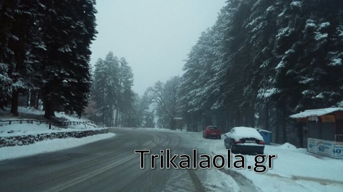 Έντονη ήταν η χιονόπτωση που σημειώθηκε την Τρίτη, στην Ελάτη Τρικάλων.