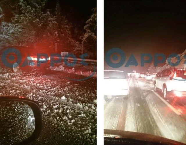 Στις 22.00 το βράδυ της Τρίτης στο 105 χλμ. της ΠΑΘΕ, στο ρεύμα προς Αθήνα, λόγω χιονόπτωσης, «δίπλωσε» μία νταλίκα, με αποτέλεσμα να διακοπεί η κυκλοφορία των οχημάτων για 10 λεπτά περίπου, έως ότου αυτή απομακρυνθεί από το οδόστρωμα. Η κίνηση στην ΠΑΘΕ προς Αθήνα διεξαγόταν με βραδυπορία. Ακολούθως, στις 04.10 τα ξημερώματα, στο ίδιο σημείο περίπου ακινητοποιήθηκε λεωφορείο, με αποτέλεσμα να διακοπεί για περίπου μία ώρα η κυκλοφορία, ενώ στις 07.15 το πρωί η κίνηση των οχημάτων διεξαγόταν από μία λωρίδα λόγω νταλίκας που «δίπλωσε».