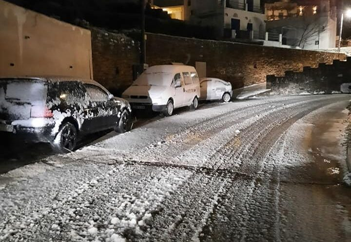 Πυκνές χιονοπτώσεις έχουν σημειωθεί από τα ξημερώματα της Κυριακής στα περισσότερα νησιά των Κυκλάδων και ήδη έχουν παρουσιαστεί τα πρώτα προβλήματα στην κυκλοφορία των οχημάτων.