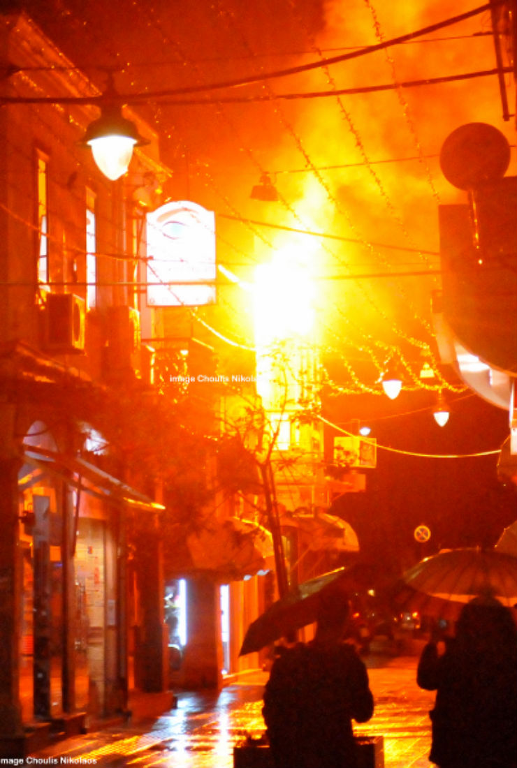 Οι φλόγες ξεπήδησαν από καλώδιο της ΔΕΗ που ηλεκτροδοτεί κτίριο.
