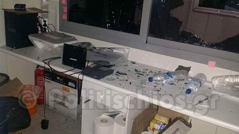 Όπως καταγγέλλουν οι ίδιοι, η καταστροφική μανία τους έφθασε σε τέτοιο σημείο που για πολλοστή φορά έκαναν «γυαλιά-καρφιά» τους χώρους που στεγάζονται οι σκοποί ενώ ένας από τους αστυνομικούς τραυματίστηκε στο κεφάλι με αποτέλεσμα να χρειαστεί η μεταφορά του στο Γενικό Νοσοκομείο Χίου.