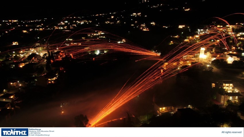 Μόλις οι καμπάνες σήμαναν 11 το βράδυ, οι πρώτες μαζικές ρίψεις έκαναν τη νύχτα μέρα ενώ μία ώρα αργότερα οι ρουκέτες μαζί με εκατοντάδες πυροτεχνήματα μετέφεραν το χαρμόσυνο μήνυμα της Ανάστασης του Κυρίου.