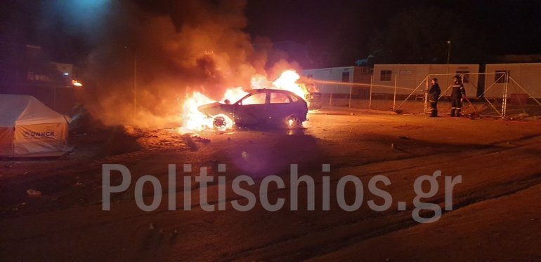 Δύο καμένα αυτοκίνητα, καμένες σκηνές μεταναστών, καταστροφές στις φρουρές των Αστυνομικών, είναι ο απολογισμός των εκτεταμένων επεισοδίων που ξεκίνησαν από το πρωί του Μεγάλου Σαββάτου και κορυφώθηκαν τα μεσάνυχτα της ίδιας ημέρας.