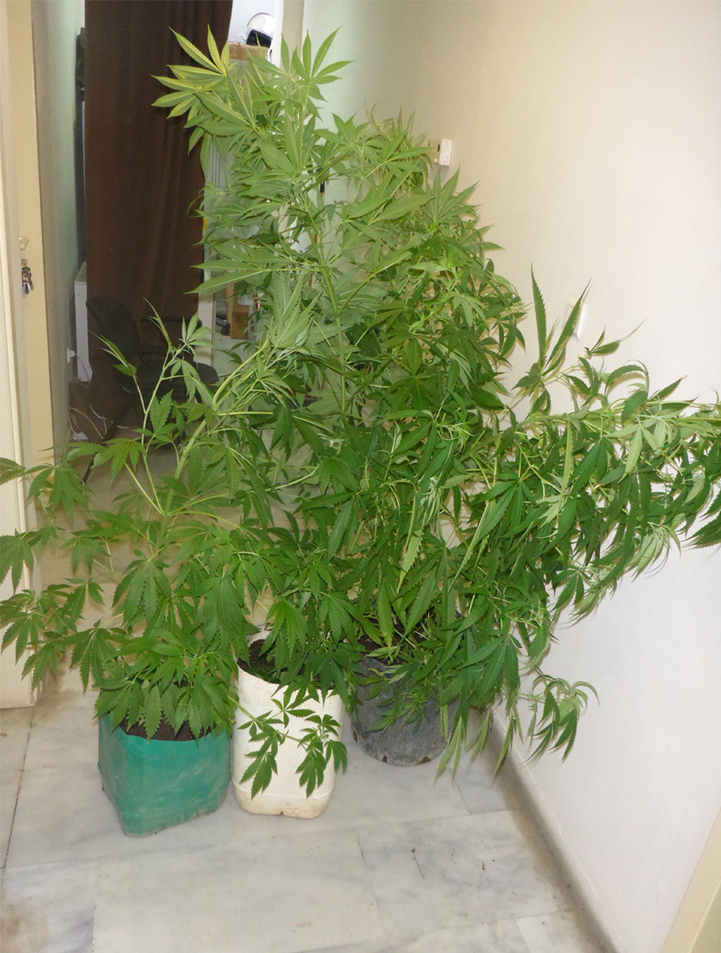 Κατά τη διάρκεια της έρευνας βρέθηκαν και κατασχέθηκαν τέσσερα δενδρύλλια κάνναβης μέσα σε γλάστρες ευρισκόμενα στο στάδιο της ανάπτυξης, ύψους έως 1,80 μέτρο.