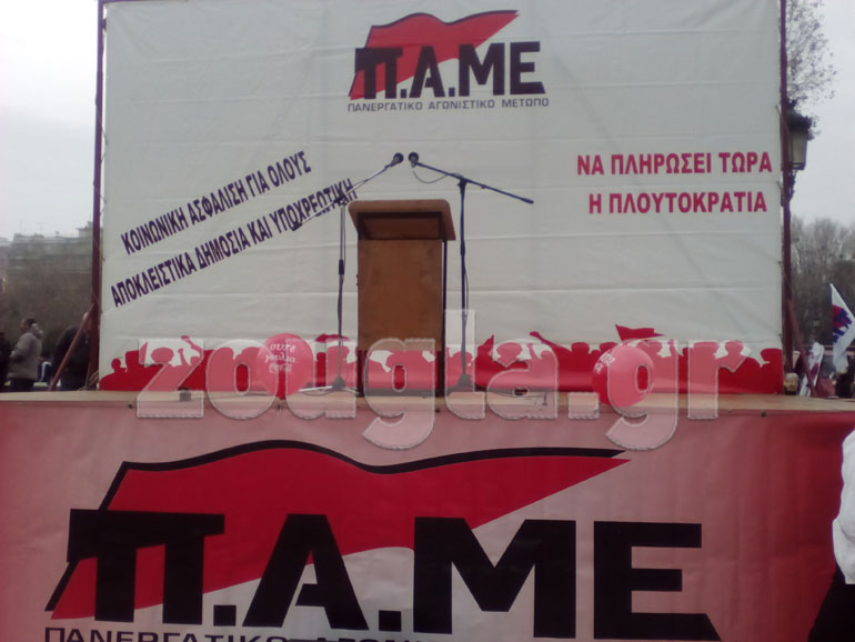 Το ΠΑΜΕ διοργάνωσε συλλαλητήριο στις 10.30 π.μ. στο άγαλμα του Βενιζέλου και στη συνέχεια προχώρησε σε πορεία στο κέντρο της πόλης.