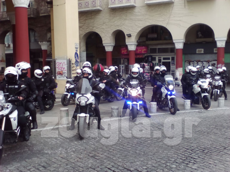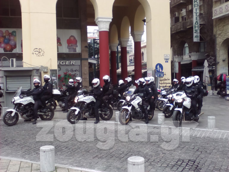 Έντονη είναι η παρουσία αστυνομικών δυνάμεων στο κέντρο της Θεσσαλονίκης.