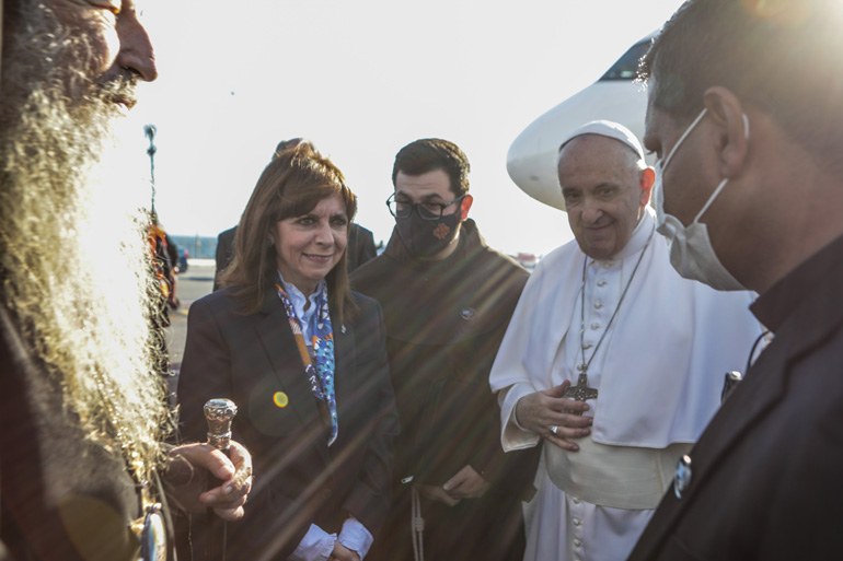 Σημειώνεται πως κατά τη διάρκεια της ζωντανής σύνδεσης της ΕΡΤ με το νησί για την επίσκεψη του Ποντίφικα είδαμε πως και η ΠτΔ, Κατερίνα Σακελλαροπούλου, αφαίρεσε τη μάσκα της ευρισκόμενη πάντα σε ανοιχτό χώρο, προκειμένου να δώσει χαιρετισμό. Βέβαια, ούτε στη συνέχεια την είδαμε μέσα από τους τηλεοπτικούς δέκτες να φοράει μάσκα. Ομοίως και ο υπουργός Μετανάστευσης και Ασύλου, Νότης Μηταράκης.