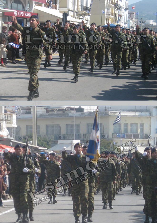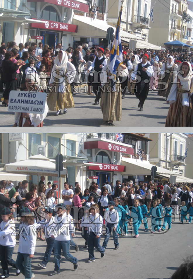 Όλα τα σχολεία του νησιού αλλά και τμήματα του στρατού συμμετείχαν στην παρέλαση, ενώ λίγο πριν από την έναρξή της οι επίσημοι κατέθεσαν στεφάνια στη πλατεία Πυθαγόρα.