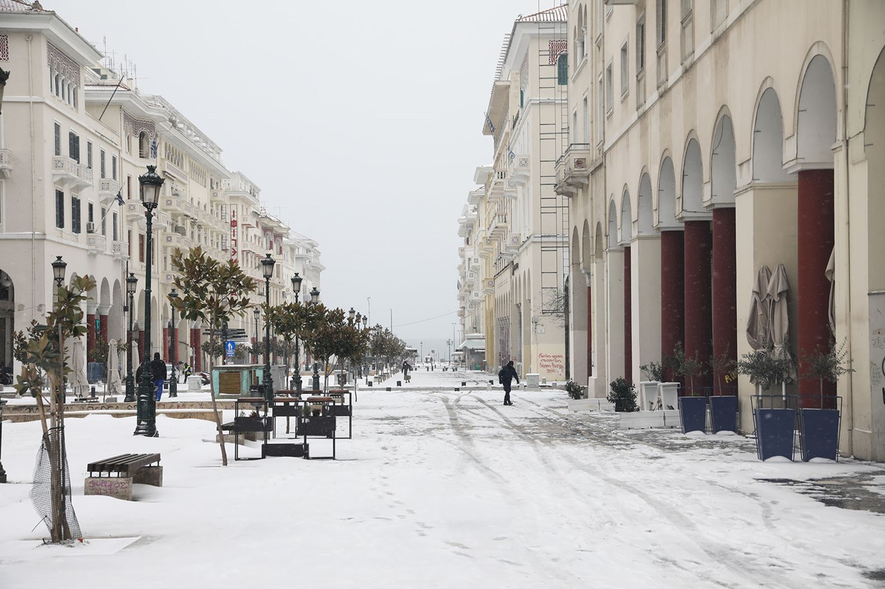 Επί ποδός παρέμειναν όλο το βράδυ τα συνεργεία και ειδικά οχήματα στους δήμους του πολεοδομικού συγκροτήματος Θεσσαλονίκης για να κρατήσουν τους δρόμους ανοιχτούς.