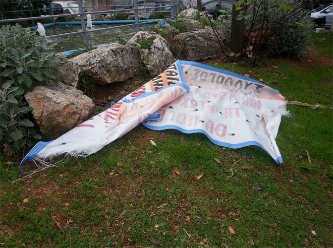 Άτομα που ανήκουν στον αντιεξουσιαστικό χώρο πραγματοποίησαν πορεία από την πλατεία Λαού και στη συνέχεια μετέβησαν στην Παναγή Τσαλδάρη και στο σημείο όπου σκίστηκε το πανό. Στις 15.00 ξεκίνησαν και πάλι πορεία προς το σημείο της αφετηρίας τους.