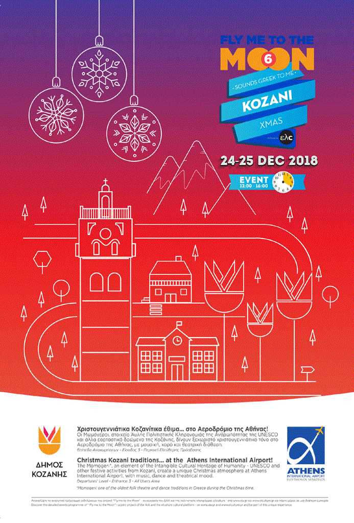 H Κοζάνη είναι ο τέταρτος προορισμός του προγράμματος Fly me to the Moon-Sounds Greek to Me! Με ακόμη περισσότερες εικόνες από την Ελλάδα, το πρόγραμμα συνεχίζεται – και η Κοζάνη, παίρνοντας τη σκυτάλη, «προσγειώνεται» στο αεροδρόμιο τις γιορτινές μέρες των Χριστουγέννων!