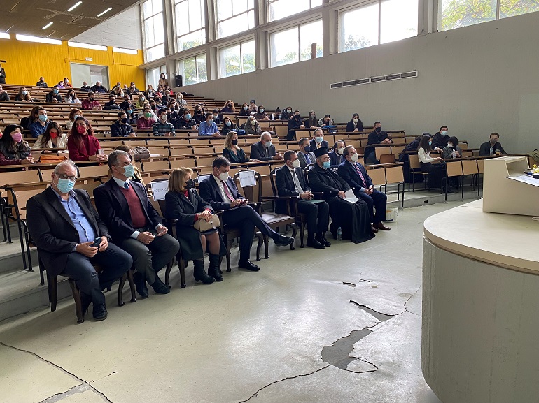 Στην εκδήλωση παρευρέθηκαν ο Θεοφιλέστατος Επίσκοπος Ωρεών κ. Φιλόθεος, Αρχιγραμματέας της Ιεράς Συνόδου της Εκκλησίας της Ελλάδος, ως εκπρόσωπος του Μακαριωτάτου Αρχιεπισκόπου Αθηνών και πάσης Ελλάδος κ.κ. Ιερωνύμου, ο Πρύτανης του Εθνικού και Καποδιστριακού Πανεπιστημίου Αθηνών κ. Μελέτιος – Αθανάσιος Δημόπουλος, ο Κοσμήτορας της Θεολογικής Σχολής Αθηνών κ. Χρήστος Καραγιάννης οι Πρόεδροι των δύο Τμημάτων Σεβ. Μητροπολίτης Κρήνης και Έξαρχος Μελίτης κ. Κύριλλος Κατερέλος, η κ. Ιωάννα Στουφή – Πουλημένου, ο Γενικός Διευθυντής του Φιλανθρωπικού Οργανισμού «ΑΠΟΣΤΟΛΗ» της Ιεράς Αρχιεπισκοπής Αθηνών Κωνσταντίνος Δήμτσας, ο Κοσμήτορας της Σχολής Θετικών Επιστημών κ. Ιωάννης Εμμανουήλ, ο Πρόεδρος της Εταιρείας Διαχειρίσεως και Αξιοποιήσεως της περιουσίας του Πανεπιστημίου Αθηνών κ. Νικόλαος Θωμαΐδης, το διδακτικό και διοικητικό προσωπικό και πλήθος φοιτητών.