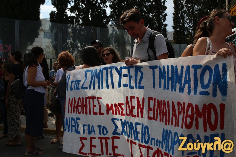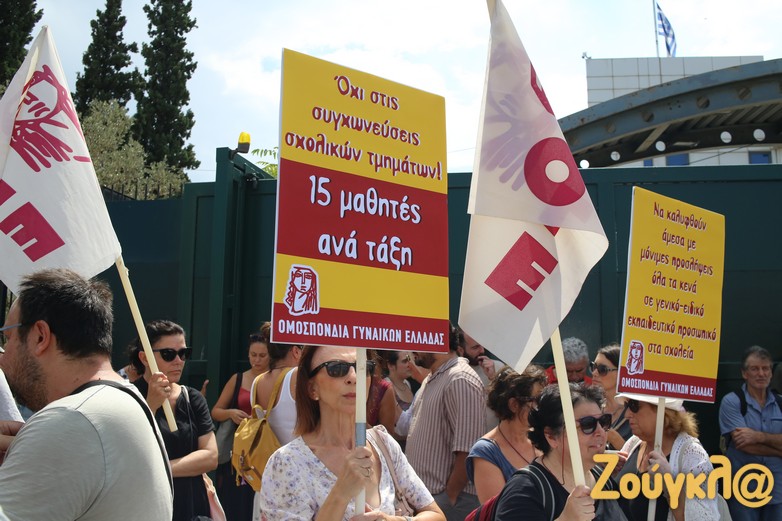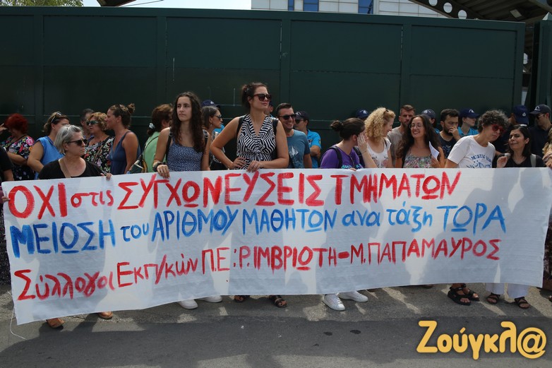 Δεκάδες εκπαιδευτικοί ανταποκρίθηκαν στο κάλεσμα των εκπαιδευτικών ομοσπονδιών, ΔΟΕ, ΟΛΜΕ και ΠΟΣΕΕΠΕΑ (Πανελλήνια Ομοσπονδία Συλλόγων Ειδικού Εκπαιδευτικού Προσωπικού Ειδικής Αγωγής) και της ΑΣΓΜΕ (Ανώτατη Συνομοσπονδία Γονέων Μαθητών Ελλάδας).