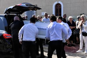Το τελευταίο αντίο στον 40χρονο είπαν συγγενείς και φίλοι στον Ιερό Ναό Αγίου Ανδρέα Πίτσων. Τραγική φιγούρα η σύζυγός του που σπάραξε περιμένοντας το φέρετρο στην είσοδο του Ιερού Ναόυ Αγίου Ανδρέου Κάτω Πιτσάς.