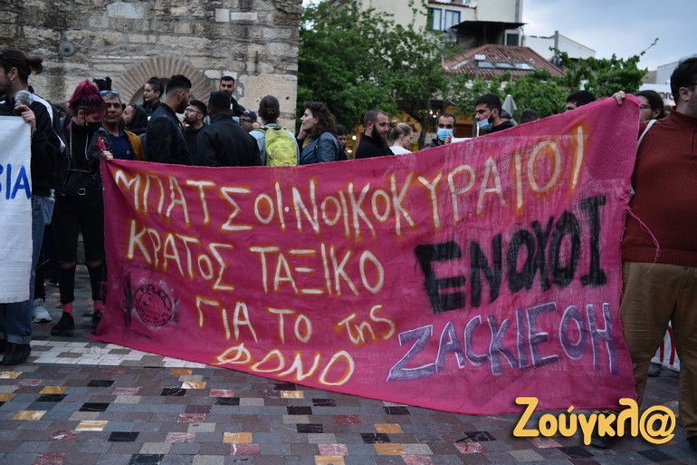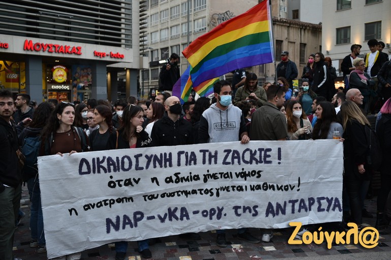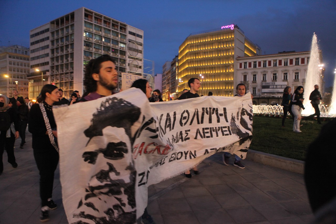 Συγκέντρωση διαμαρτυρίας για την αθώωση των τεσσάρων αστυνομικών που κατηγορούνταν για τον θάνατο του Ζακ Κωστόπουλου έγινε στο Μοναστηράκι.