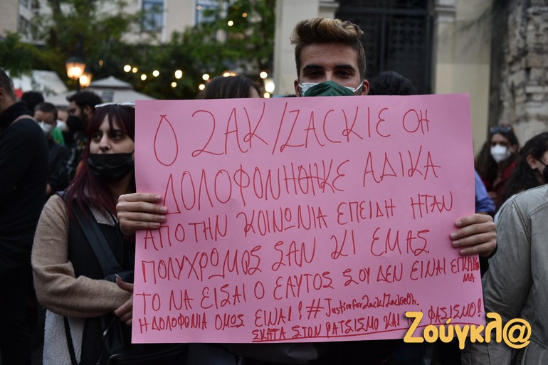 Το κάλεσμα στη συγκέντρωση απηύθυνε μεταξύ άλλων και η σελίδα «Justice For Zak/Zackie» που έχει δημιουργηθεί στο Facebook . Οι φίλοι και οι συγγενείς του Ζακ νιώθουν πως η μνήμη του δεν δικαιώθηκε, παρόλο που σήμερα το μεσημέρι βγήκε καταδικαστική απόφαση για τον κοσμηματοπώλη και τον μεσίτη οι οποίοι ήταν άμεσα εμπλεκόμενοι ενώ αθώοι κρίθηκαν οι τέσσερις αστυνομικοί.
