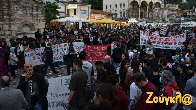 Συγκέντρωση διαμαρτυρίας για την αθώωση των τεσσάρων αστυνομικών που κατηγορούνταν για τον θάνατο του Ζακ Κωστόπουλου έγινε στο Μοναστηράκι.