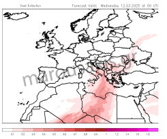Σημειώνεται ότι η ατμοσφαιρική κυκλοφορία που θα επικρατήσει τις επόμενες ημέρες, ευνοεί τη μεταφορά αφρικανικής σκόνης προς την περιοχή της Ελλάδας.