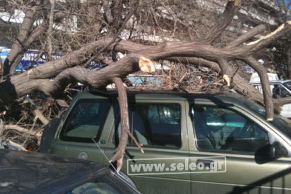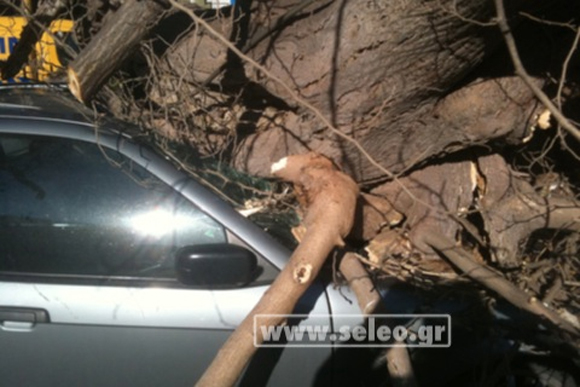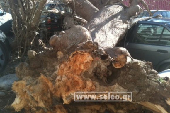 Σύμφωνα με την Πυροσβεστική Υπηρεσία που έσπευσε στην περιοχή για να κόψει τα κλαδιά, το δέντρο έπεσε στον δρόμο, καταστρέφοντας ολοσχερώς ένα αυτοκίνητο και προκαλώντας σοβαρές ζημιές σε ένα δεύτερο.