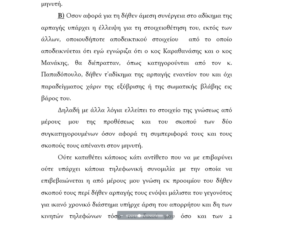 Ωστόσο ακόμη και στην περίπτωση που ισχύουν τα όσα επικαλούνται αυτοί που κατηγορούν την Γεωργία Μπίκα, τα γεγονότα μιλούν από μόνα τους. Διαβάστε μέρος της επιχειρηματολογίας από το υπόμνημα που κατάθεσε ο ποινικολόγος Νίκος Διαλυνάς εκ μέρους της Γεωργίας Μπίκα.