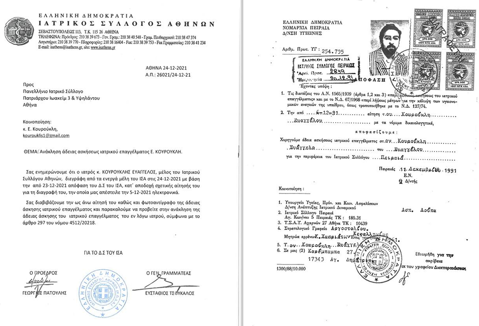 Στη γνωστοποίηση της διαγραφής του Βαγγέλη Κουρούκλη προχώρησε μία ημέρα πριν από τα Χριστούγεννα ο Ιατρικός Σύλλογος Αθηνών.