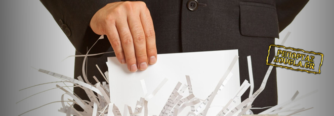 «Με αφορμή τη διαρροή στο διαδίκτυο επανειλημμένα εγγράφων του Γ. Λ. Κράτους, τόσο σε χειρόγραφη όσο και σε ηλεκτρονική μορφή, παρακαλούμε να εγκρίνετε την προμήθεια ενός (1) κεντρικού καταστροφέα εγγράφων, προκειμένου να καταστρέφονται πριν την έξοδό τους από το κεντρικό κτίριο του Γ. Λ. Κράτους, όλα τα έγγραφα που προωθούνται προς ανακύκλωση» αναφέρεται χαρακτηριστικά στο έγγραφο – παραδοχή κατάστασης μπάχαλου.