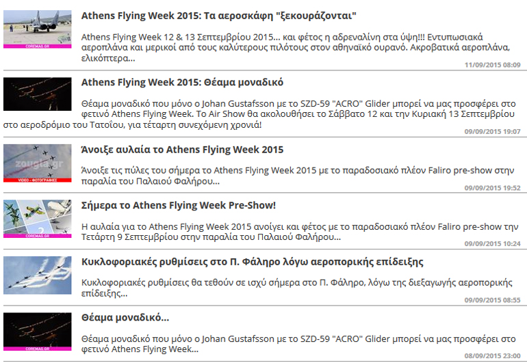 Παρακολουθήστε ζωντανά από τη zouglatv τις δοκιμαστικές πτήσεις των αεροσκαφών στο πλαίσιο του Athens Flying Week που ξεκινά επίσημα το Σαββατοκύριακο στο Τατόι.