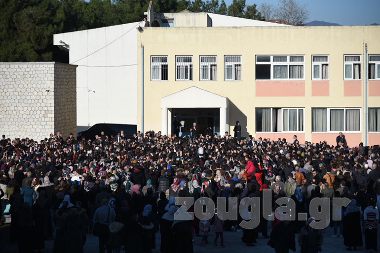 Ήδη στο δημοτικό σχολείο Τζαμάλ Μπαγιάρ έχει συγκεντρωθεί πλήθος κόσμου και στην αυλή έχουν παραταχθεί όλα τα παιδιά. Εκεί βρίσκονται και ο αναπληρωτής υπουργός Εξωτερικών Γιώργος Κατρούγκαλος και ο υφυπουργός Εξωτερικών Γιάννης Αμανατιδης.