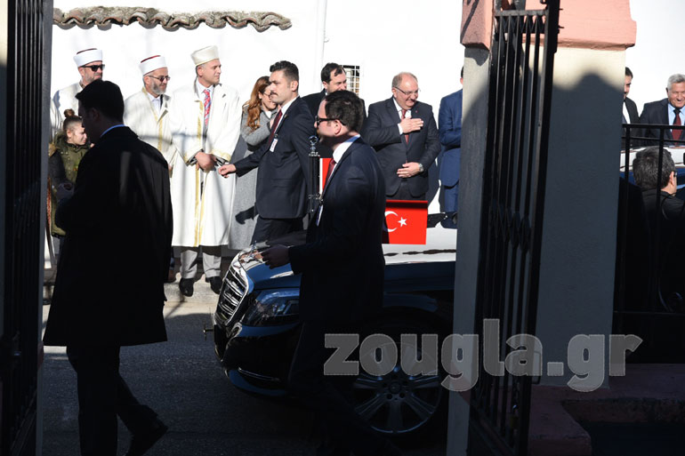 Ο Πρόεδρος της Τουρκίας έγινε δεκτός με χειροκροτήματα από το συγκεντρωμένο πλήθος μπροστά από το τέμενος με τις γυναίκες να είναι συγκεντρωμένες σε ικανή απόσταση από τους άνδρες όπως επιβάλλει το ισλαμικό πρωτόκολλο.
