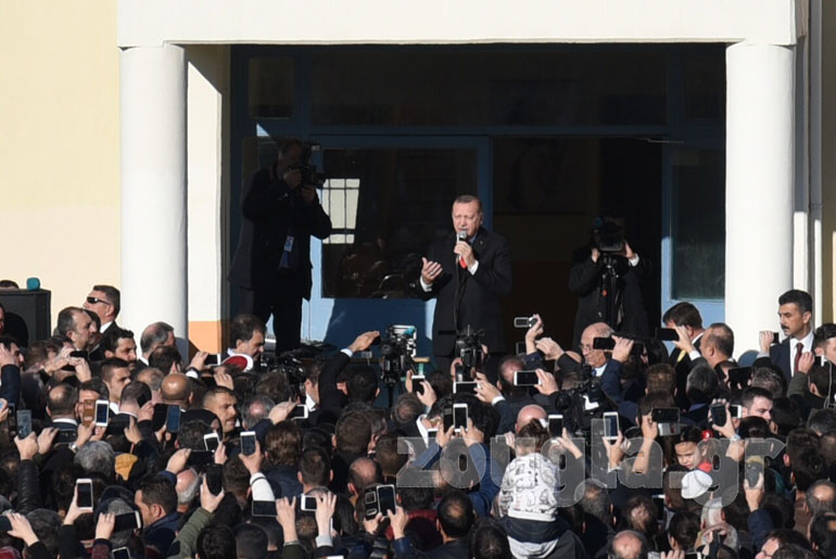 Η παρουσία της αστυνομίας είναι έντονη και ορατή σε κάθε σημείο. Ο πρόεδρος της Τουρκίας πραγματοποίησε ομιλία κατά την οποία ανέφερε ότι «Είχαμε σημαντικές και ενδιαφέρουσες συζητήσεις στην Αθήνα οι οποίες ελπίζουμε ότι θα καρποφορήσουν». «Είστε πολίτες της Ελλάδας και πρέπει να εργαστείτε για το καλό της», είπε απευθυνόμενος στο πλήθος.